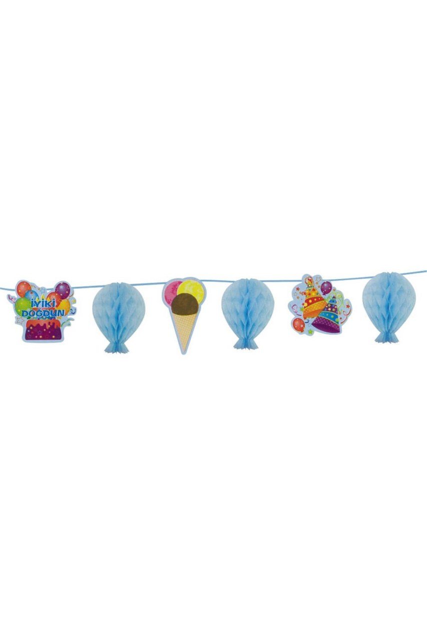 1 Yaş Doğum Günü Temalı Mavi Sıralı Petek Süs