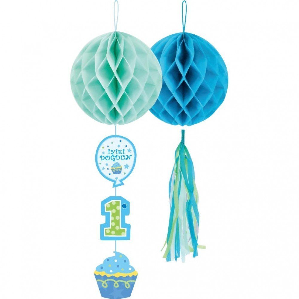 1 Yaş İyi ki Doğdun İkili Petek Süs Mavi
