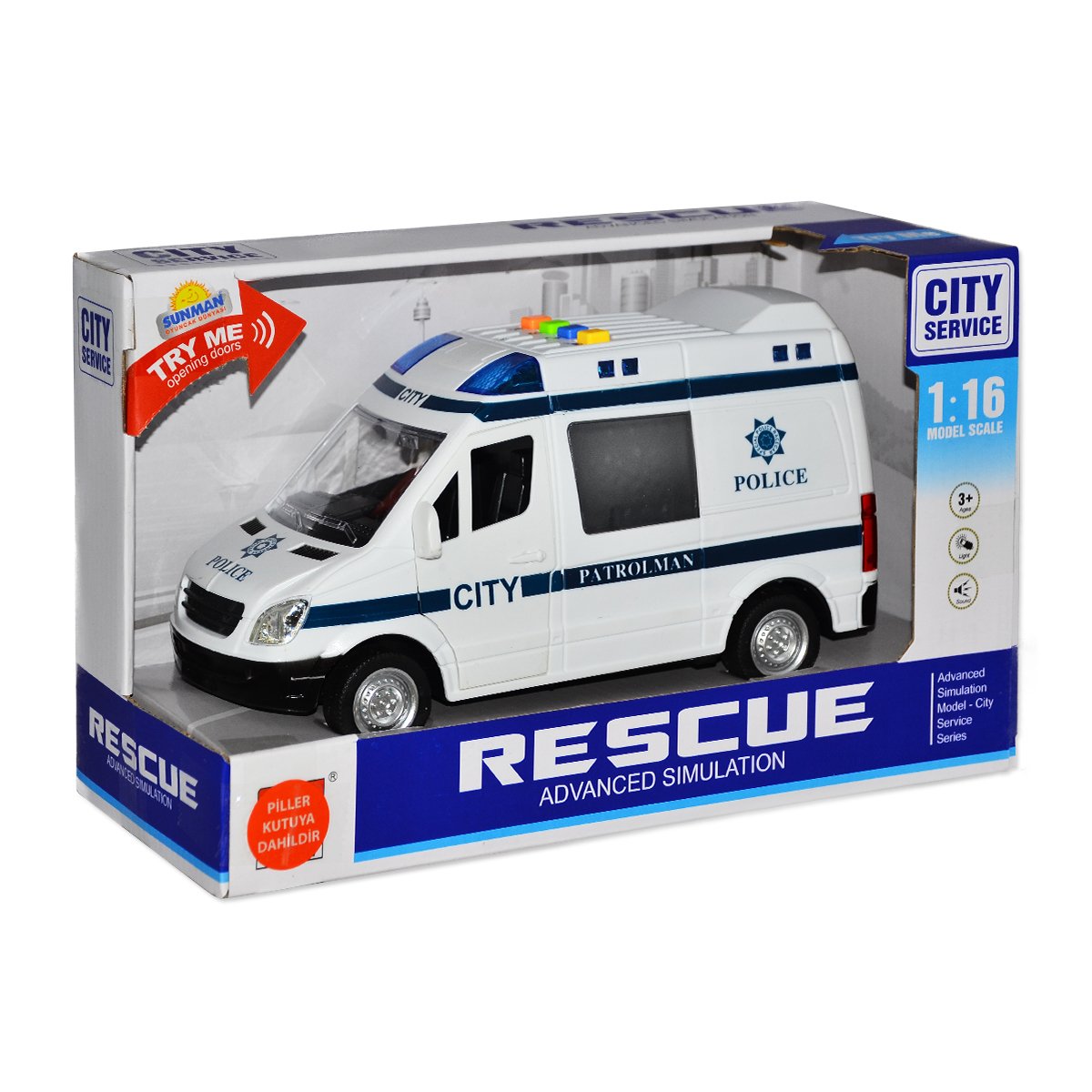 10590 Sun-Yfn 1:16 Araba Polis Ambulans Sesli İşikli