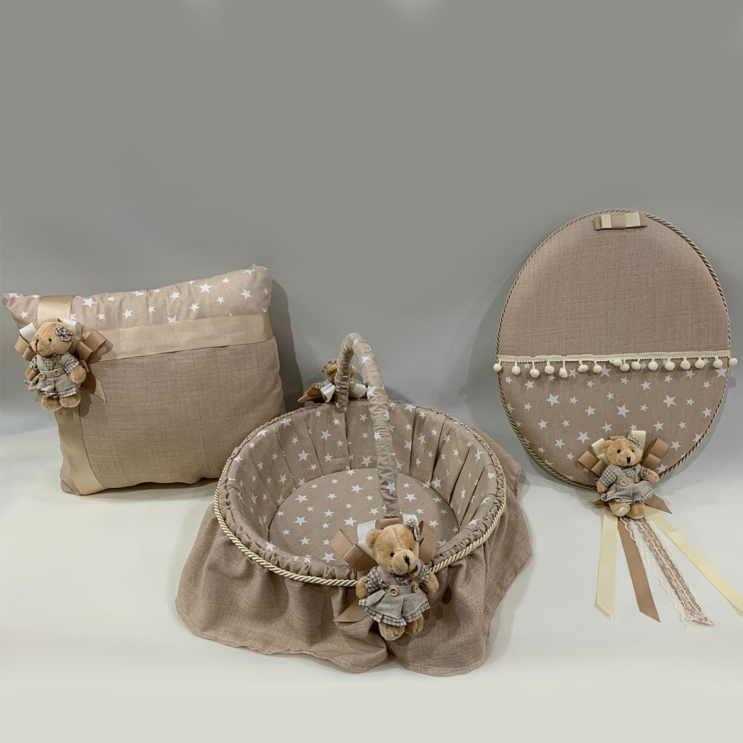 Ayıcıklı Krem Bebek Kapı Süsü Yastık Sepet 3'lü Set