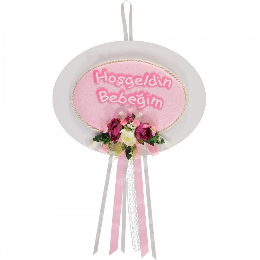 Ahşap Oval Hoşgeldin Bebeğim Kapı Süsü Pembe