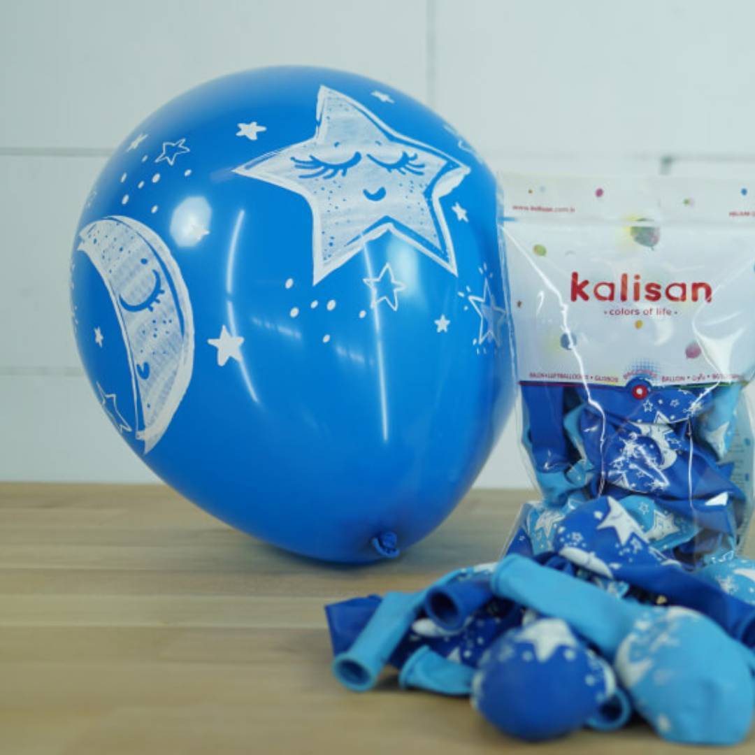 Paket içerisinde toplam 10 adet Ay ve Yıldız Baskılı Mavi Balon bulunmaktadır.