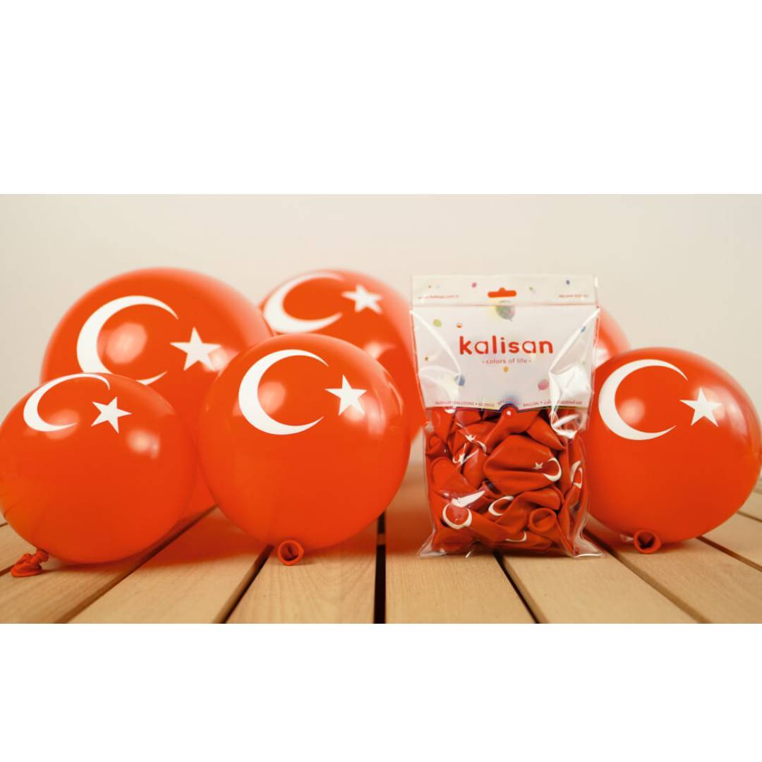 Paket içinde 10 adet standart (12 inç 30 cm) Ay Yıldız Baskılı Balon bulunmaktadır.