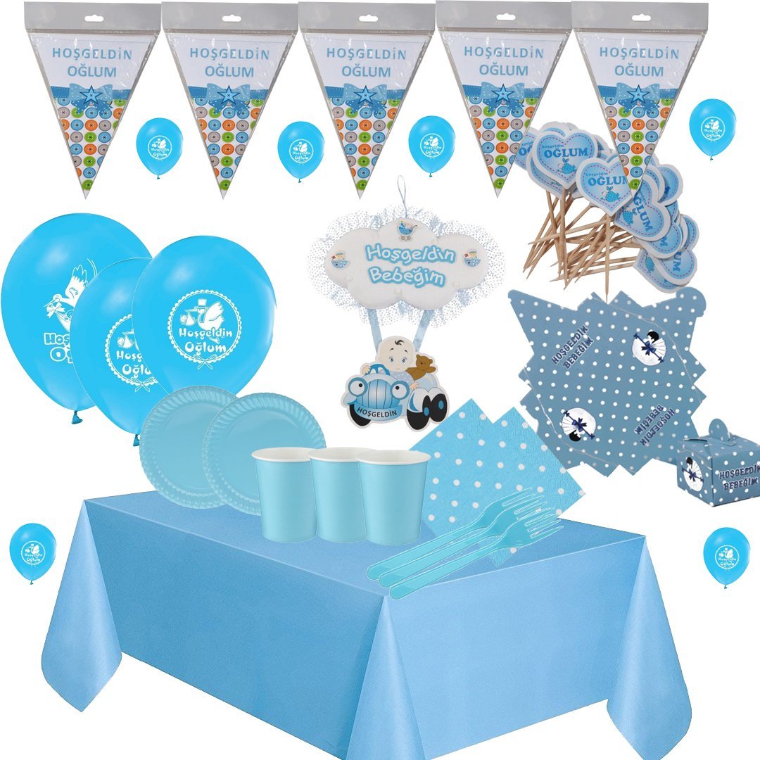 Erkek Bebek Baby Shower Hoş Geldin Bebeğim Parti Seti 8 Kişilik