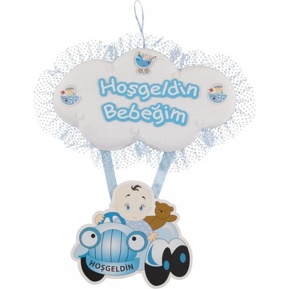 1 Adet Mavi Hoşgeldin Bebeğim yazılı Kapı süsü