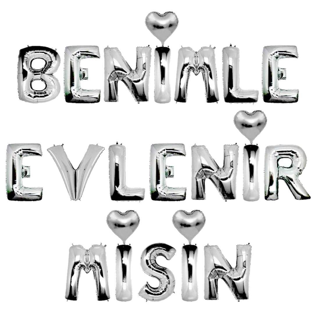 BENİMLE EVLENİR MİSİN Folyo Gümüş Balon Set 40 cm