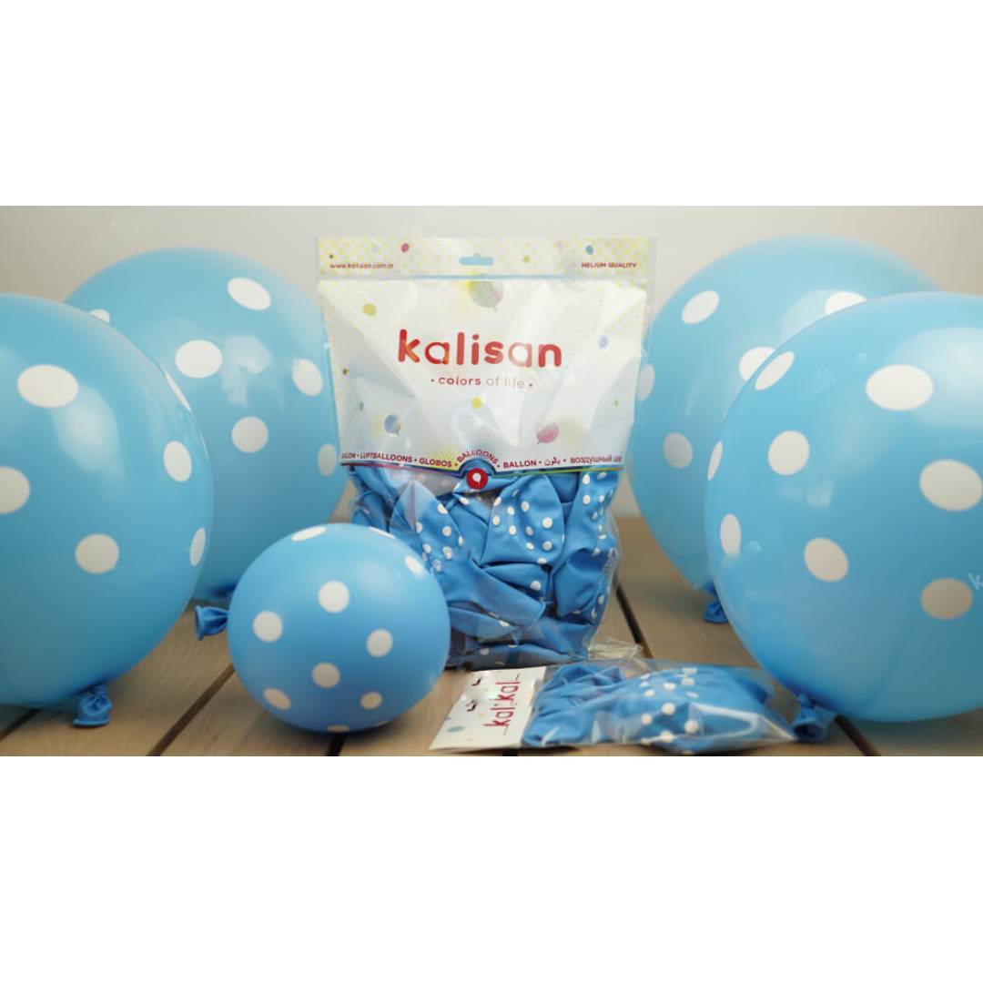 Temalı doğum günlerinde ve tüm partilerde kullanabileceğiniz Beyaz Puantiyeli Mavi Balon!