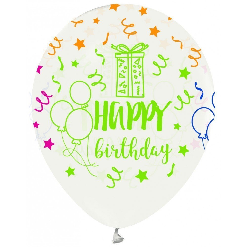 Çepeçevre Floresan Happy Birthday Şeffaf Balon Paket İçi Miktarı: 100 Adet Ürün Ölçüsü: 12"