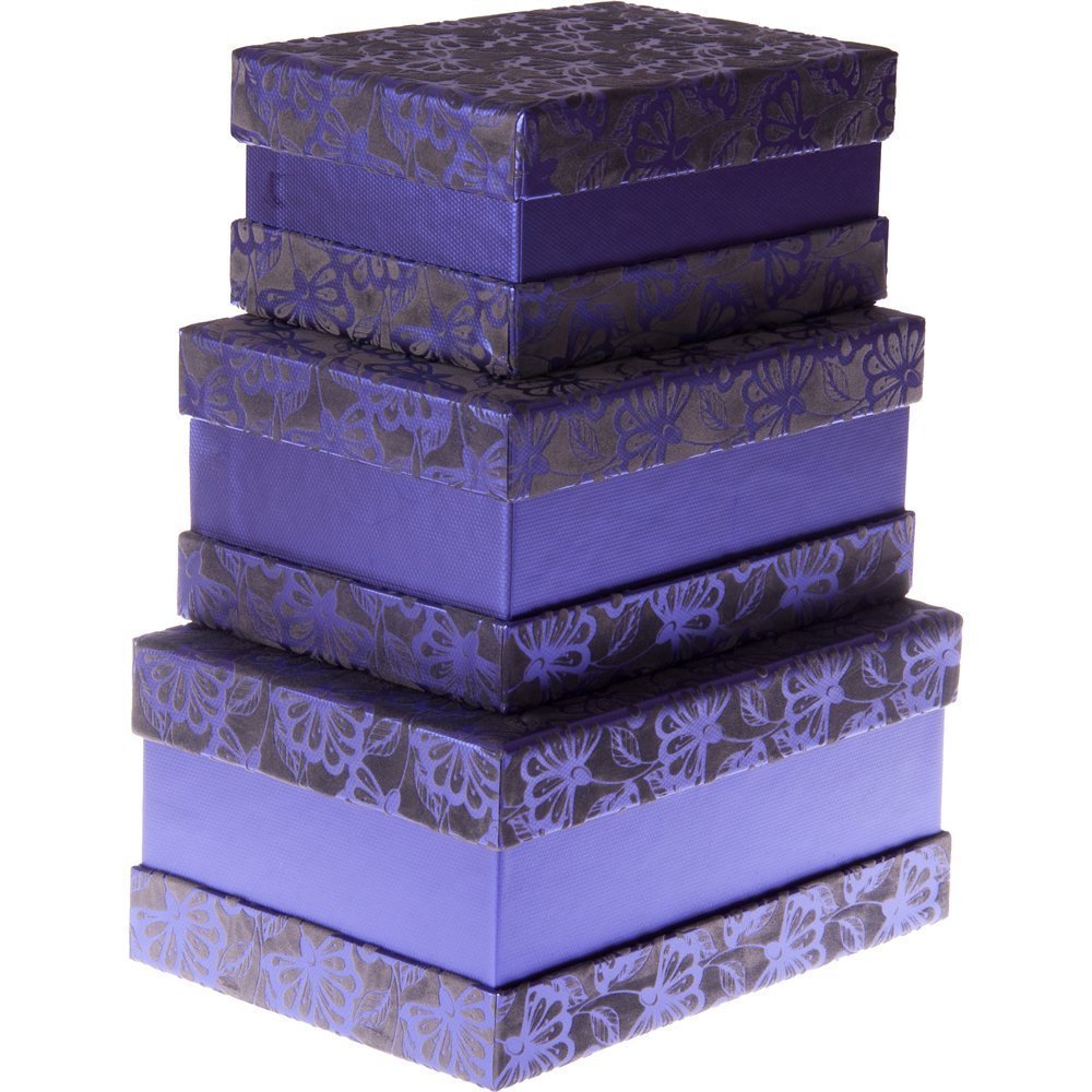 Çiçekli İyolit Serisi Kutu Set 3lü Paket İçi Miktarı: 3 adet 3 kutunun ölçüleri farklıdır. 1. Boy Ölçüsü: 19,5 x 13,5 x 9 cm 2. Boy Ölçüsü: 22 x 16 x 10 cm 3. Boy Ölçüsü: 24,5 x 17,5 x 12 cm Kutunun zemini mor renk olup, alt ve üst kapakları mor zemin üzerine gri kadife kaplamadır.