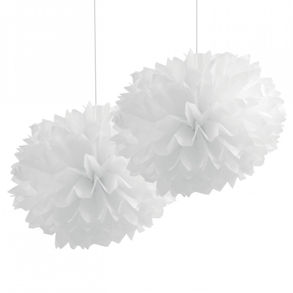 İkili Ponpon Çiçek Dekor Süs Beyaz