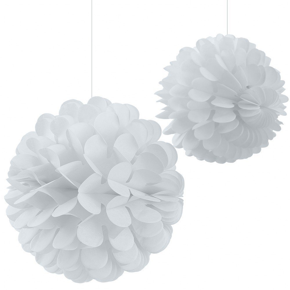 İkili Ponpon Çiçek Dekor Süs Beyaz