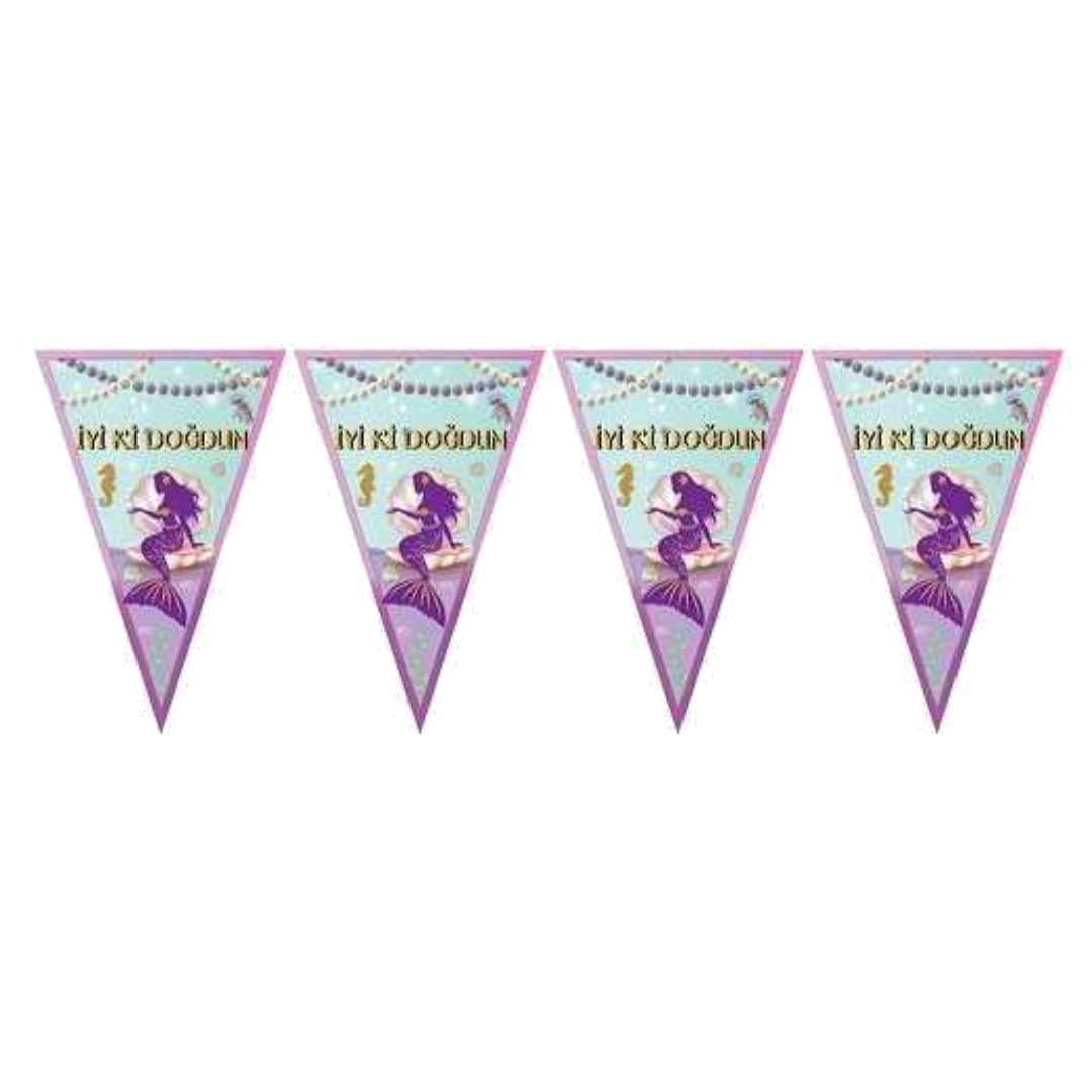 Deniz Kızı temalı doğum günü partilerinin vazgeçilmezi Deniz Kızı İyi ki Doğdun Üçgen Flama ile partinize renk katın.