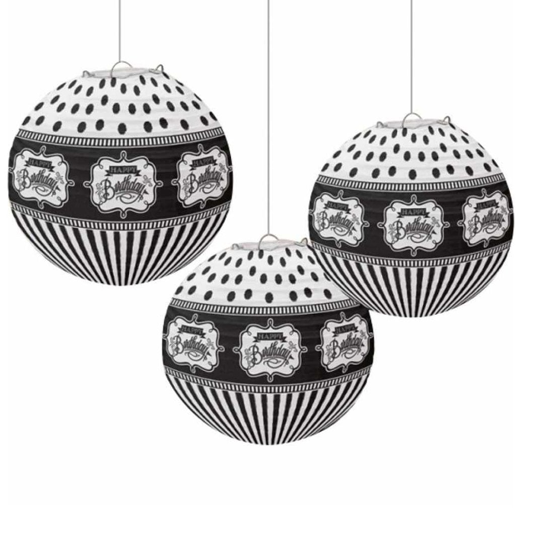 Happy Birthday Siyah-Beyaz Kağıt Fener Seti
