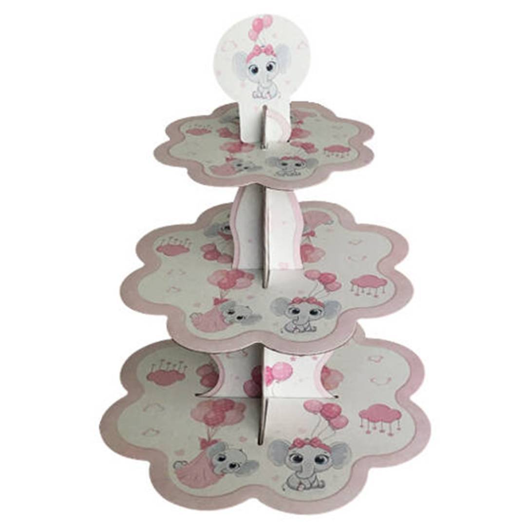 Pembe Fil Temalı Kek Standı 3 Katlı