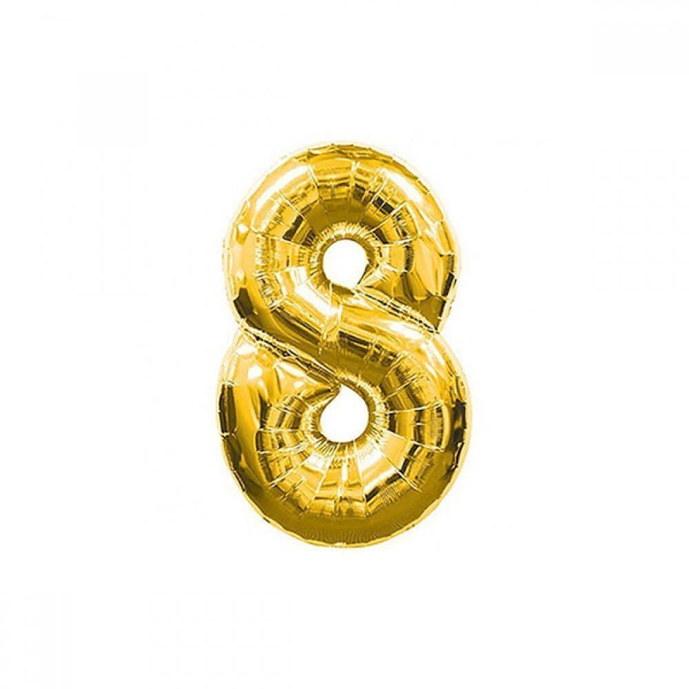 Parti ve Davetleriniz için folyo balon süslemelerinizde kullanabileceğiniz gold 8 Folyo Rakam balonu Partipan güvencesi ile sipariş verin!