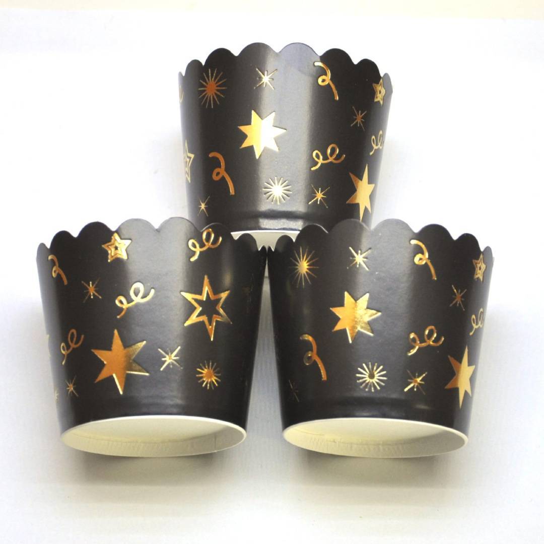 Gold Yıldızlı Siyah Muffin Cupcake Kabı 12 Adet