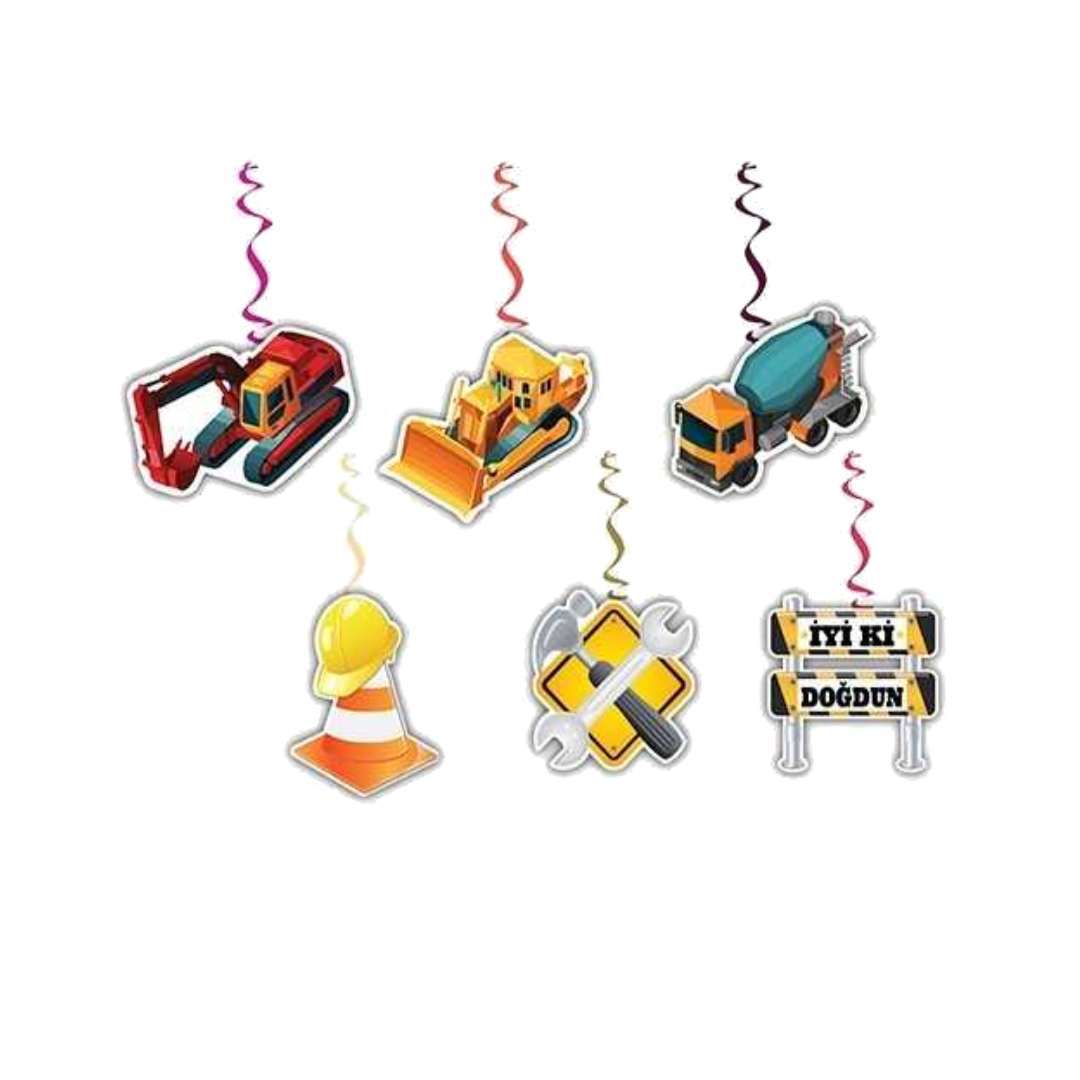 Paket içerisinde 6 adet İnşaat Temalı Asmalı Tavan Süs bulunur.