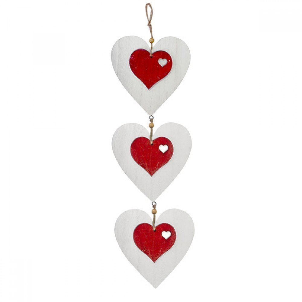 İpe Dizili 3lü Ahşap Kalp Süs