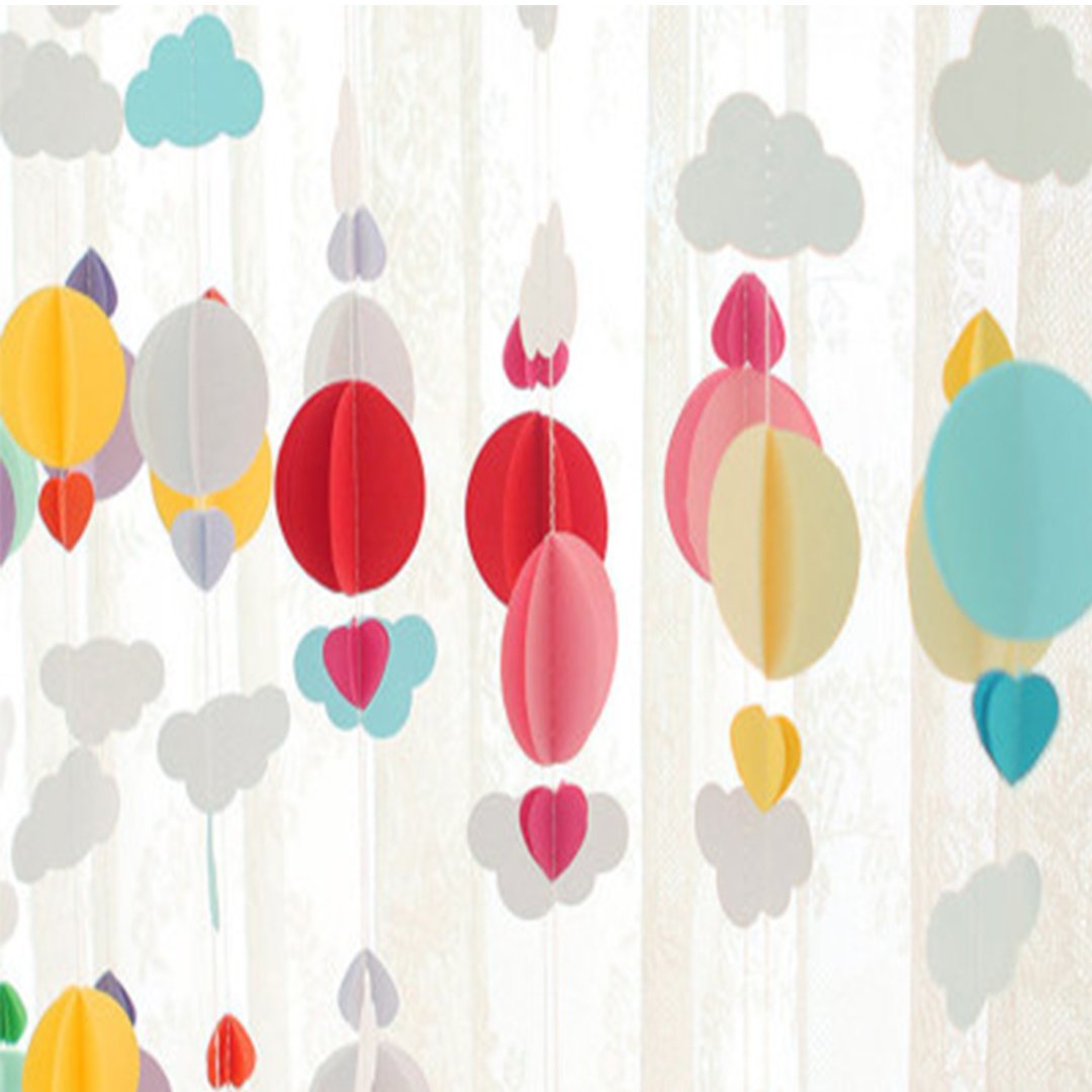 Doğum günü partilerinizde mekanı süslemek için kullanılan 3d boyut görünümü sağlayan İpe Dizili Renkli Yuvarlak Bulutlu Zincir Kağıt Süsü partilerinize renk katacaktır.