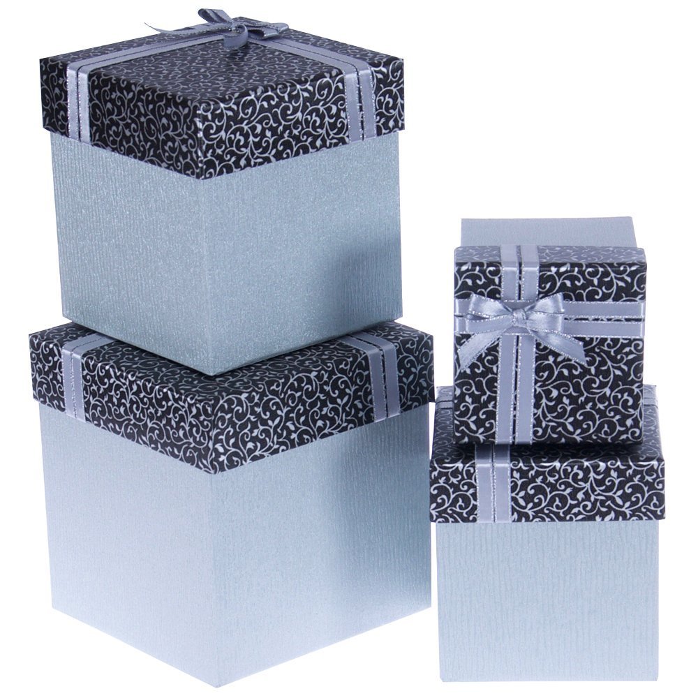Janue Kutu Set 4lü Paket İçi Miktarı: 4 adet 4 kutunun ölçüleri farklıdır. 1. Boy Ölçüsü: 10,5 x 10,5 x 11,5 cm 2. Boy Ölçüsü: 13 x 13 x 13,5 cm 3. Boy Ölçüsü: 15 x 15 x 15,5 cm 4. Boy Ölçüsü: 17 x 17 x 17,5 cm Ürün Rengi: Siyah Desenli Kapak & Gümüş Gövde