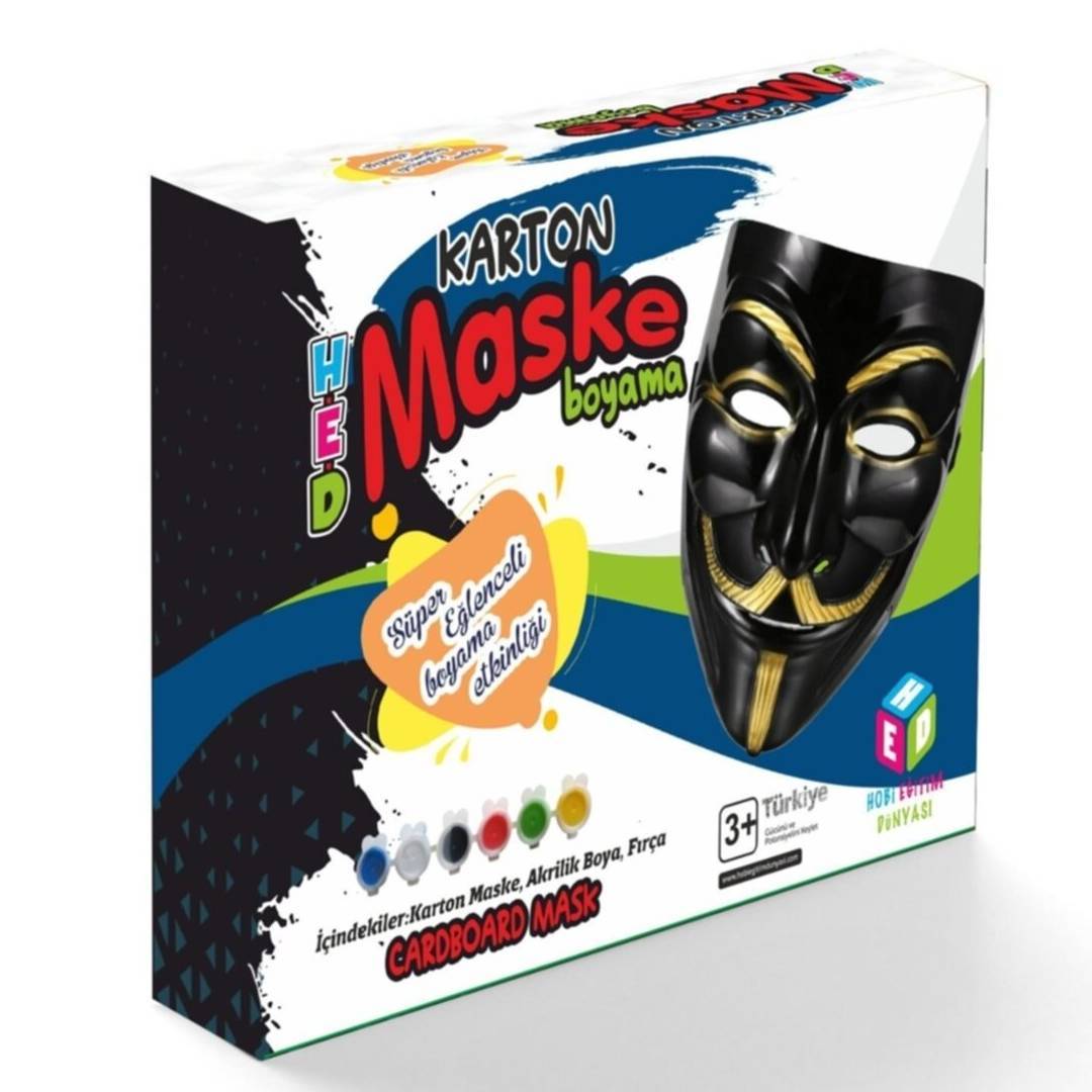 1 adet karton malzemeden üretilmiş maske , 6 renk boya ve sulu boya fırçası bulunmaktadır.