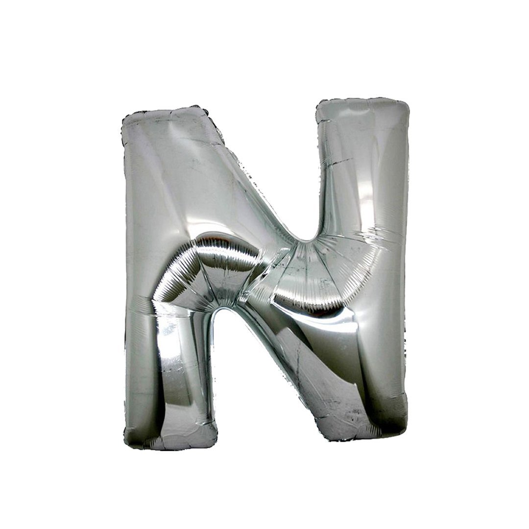 N Harf Gümüş Folyo Balon 16 inç 40 cm