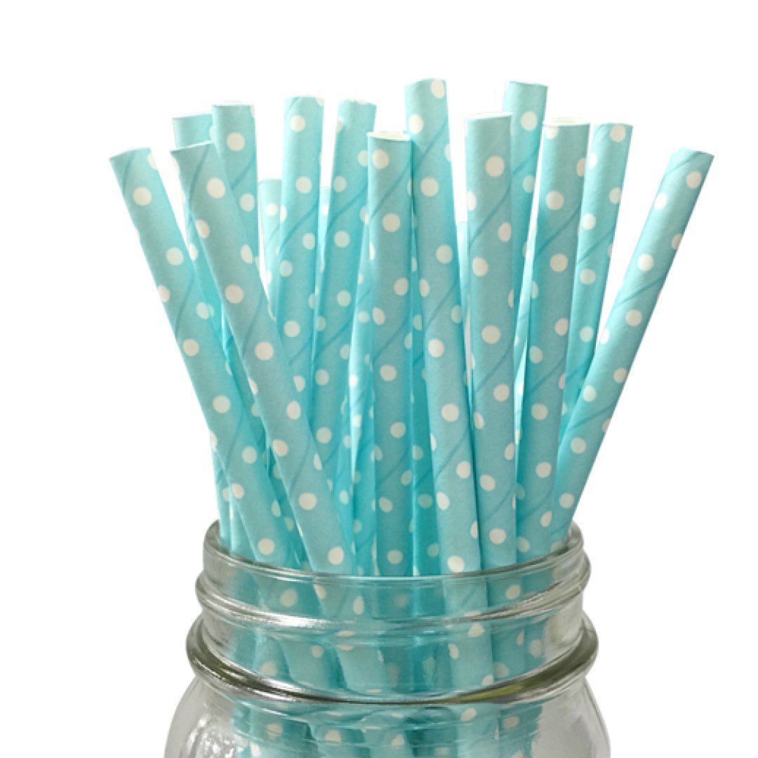 Puantiyeli Mavi Kağıt Pipet 20 Adet