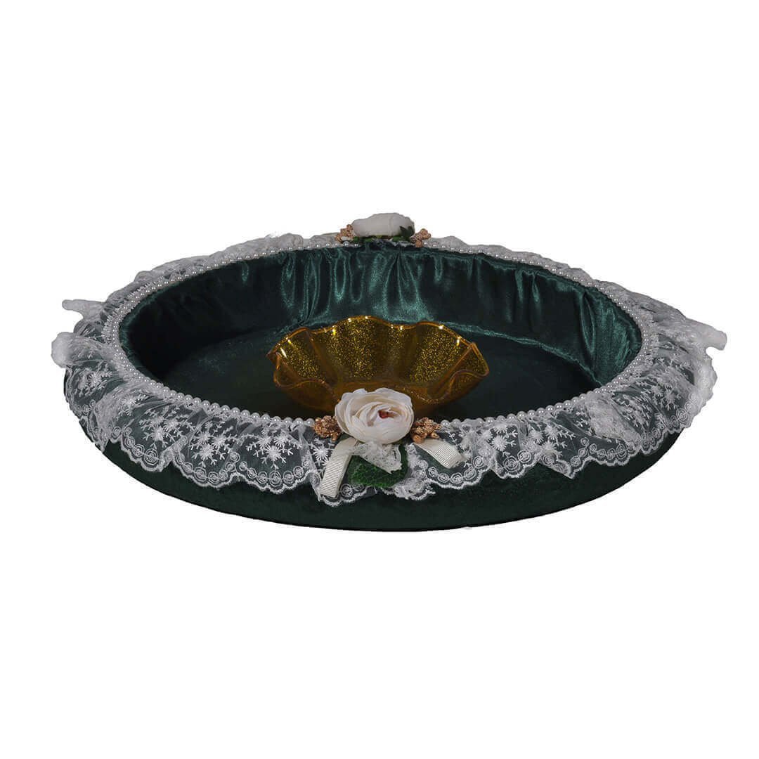Kına Gecesi organizasyonlarınızda kullanabileceğiniz Yeşil Renkli Dantelli Kadife Kına Tepsisi.