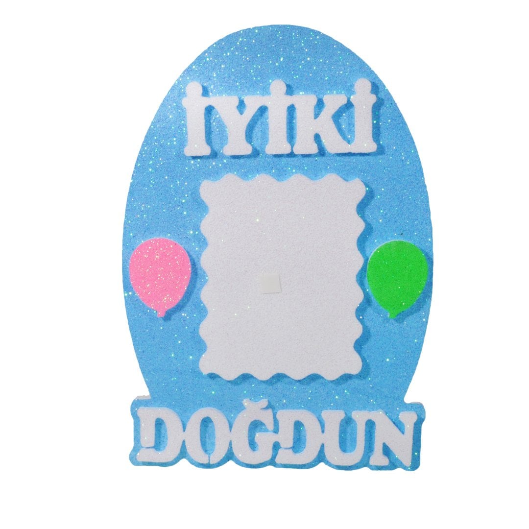 Resim Çerçeveli İyi ki Doğdun Yazılı Strafor Mavi Renk