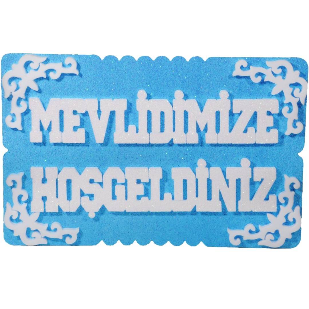 Mevlidimize Hoş Geldiniz Simli Strafor Mavi