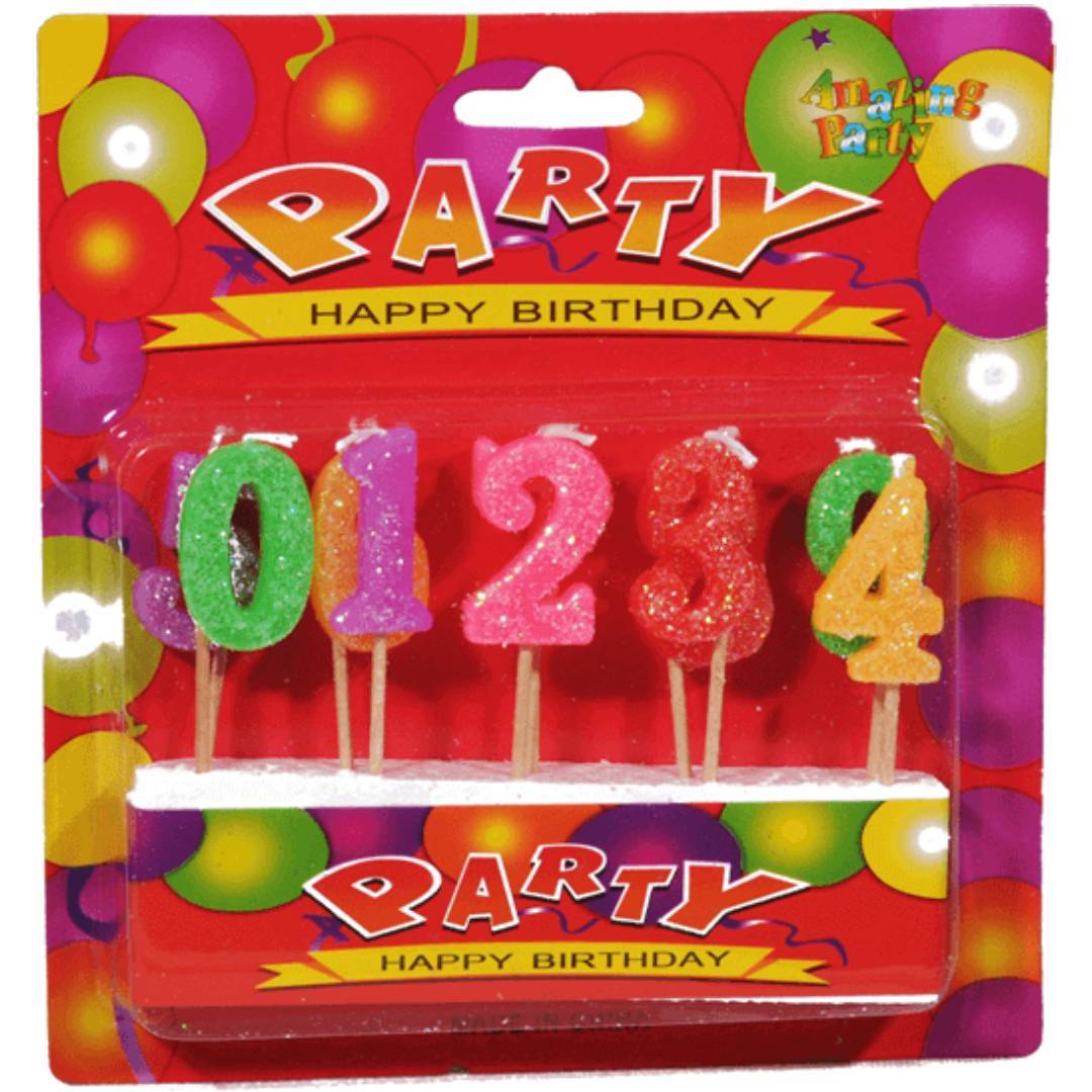 Kutu içerisinde 0'dan 9'a kadar sayılardan hazırlanmış mum bulunmaktadır.