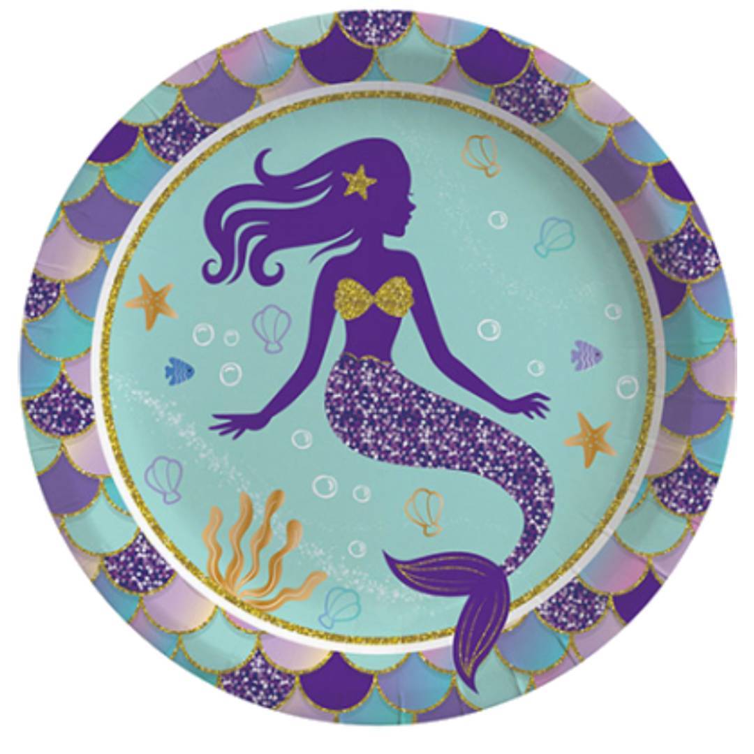 Doğum günü partileri ve özel günler için üretilmiş Pırıltılı Deniz Kızı tabak.