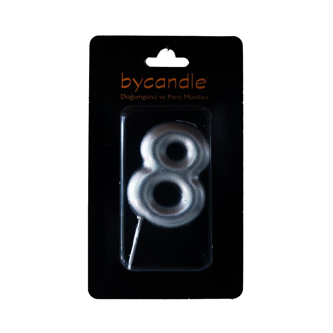 8 Yaş Gümüş Rakam Mum özel tasarımı ile parti pastalarınıza renk katacak!