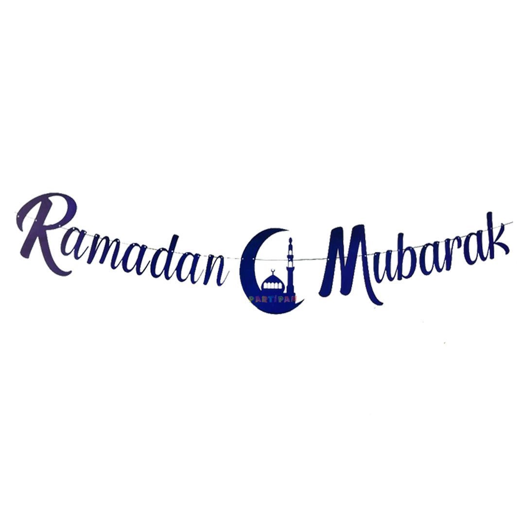 - 1 set parlak mavi Ramadan Mubarak yazısı