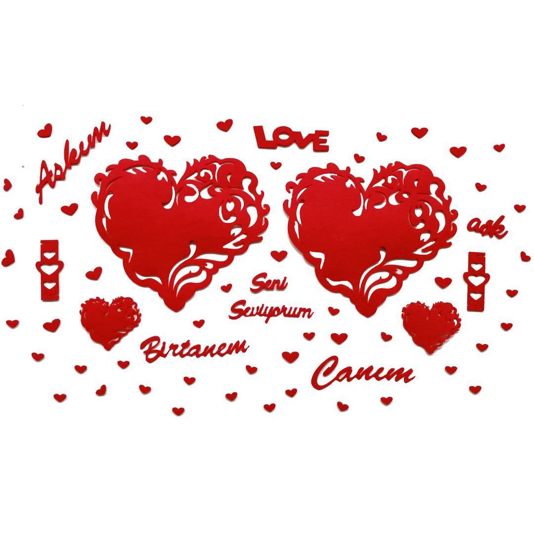 seni seviyorum, love, aşk, canım, aşkım, birtanem keçe yazıları ve keçe kalpler aşk dolu bir ortam sunacak!