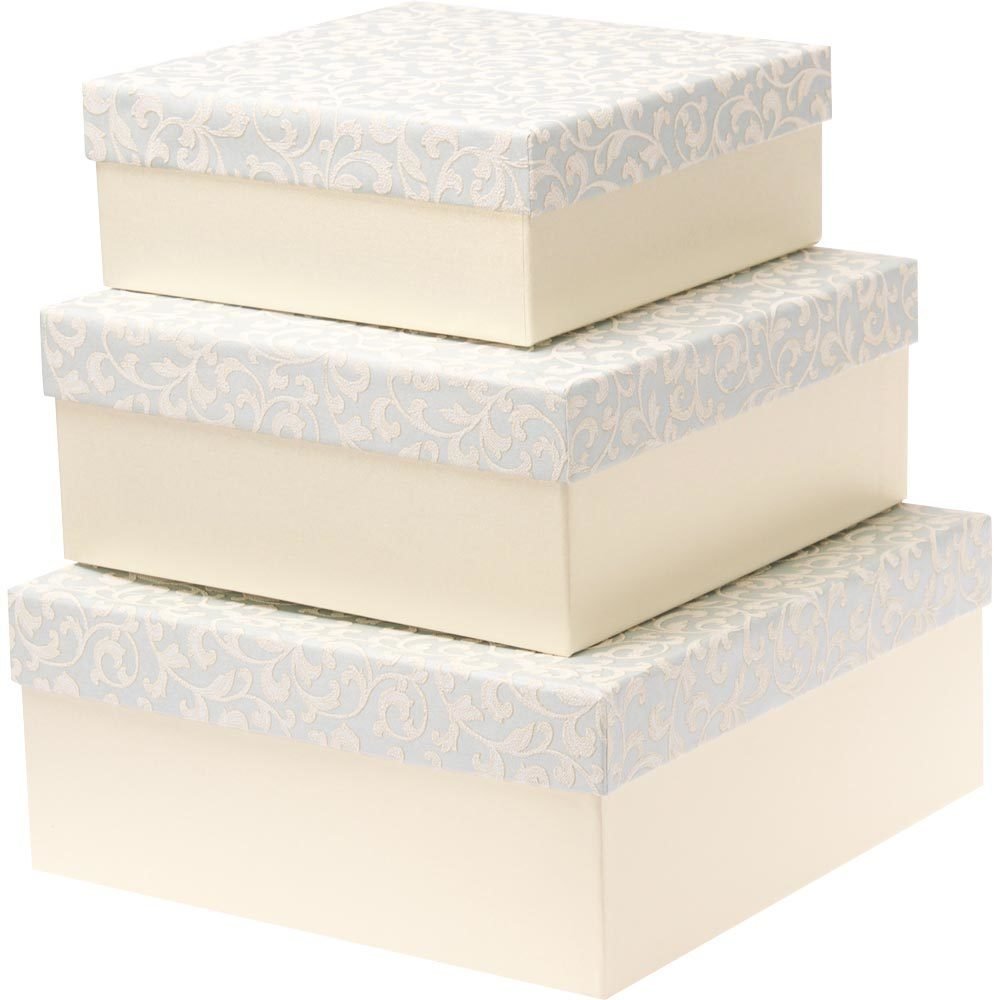 KT-506 Şal Desenli Bebek Mavisi Lüks Kutu Set 3lü Paket İçi Miktar: 3 Adet Renk: Bebek Mavisi Kapak & Krem Gövde 1. Boy Ölçüsü: 195 x 195 x 75 mm 2. Boy Ölçüsü: 225 x 225 x 95 mm 3. Boy Ölçüsü: 260 x 260 x 110 mm