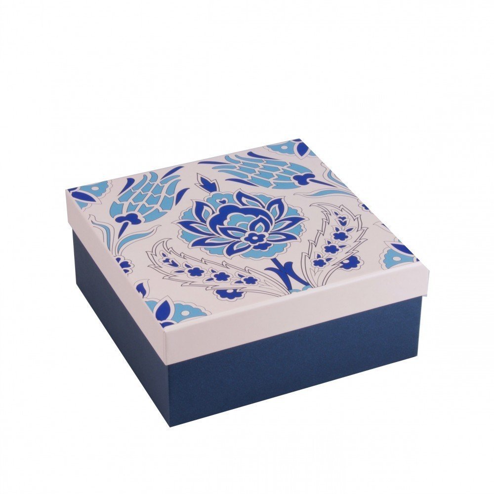 TULİP KUTU SET 3LÜ Paket İçi Miktar: 3 Adet Koli İçi Miktar: 8 Adet Renk: Mavi Lale Motifli Kapak & Lacivert Gövde 1. Boy Ölçüsü: 195 x 195 x 75 mm 2. Boy Ölçüsü: 225 x 225 x 95 mm 3. Boy Ölçüsü: 260 x 260 x 110 mm