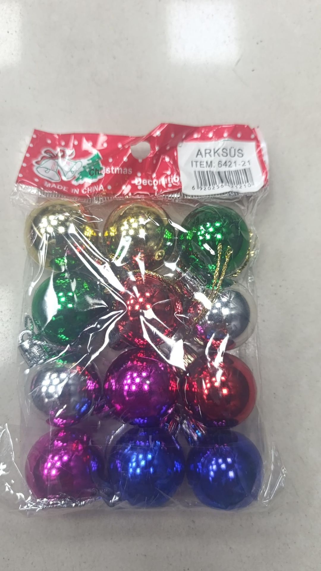 Yılbaşı Ağaç Topu 3 cm 12'li 6421-21 Karışık Renkli